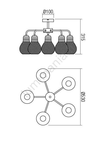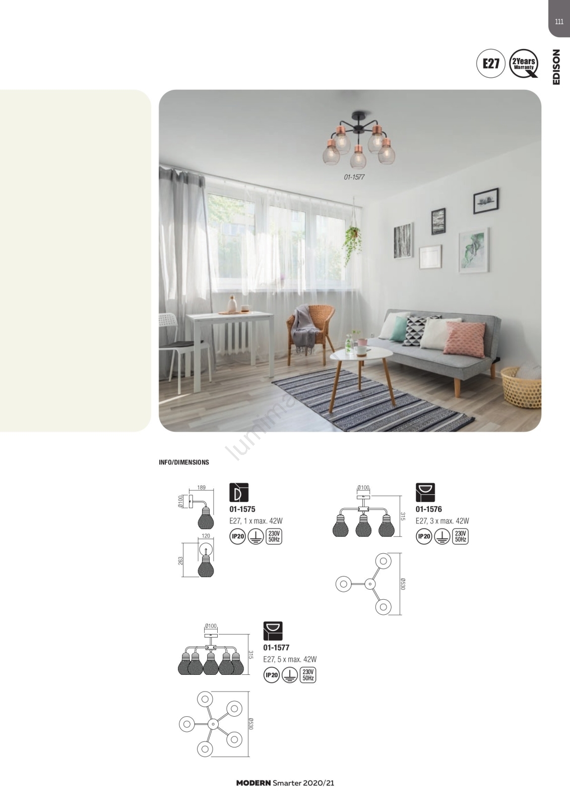 Redo 01-1577 - Lustre sur tige EDISON 5xE27/42W/230V Ø 53 cm noir/cuivré caractérise un design agréable et fonctionnel.  Une ampoule à culot E27 convient pour ce luminaire. Ici, vous pouvez acheter d'autres ampoules à des prix avantageux. Vous aurez un ajout intéressant dans votre intérieur.
