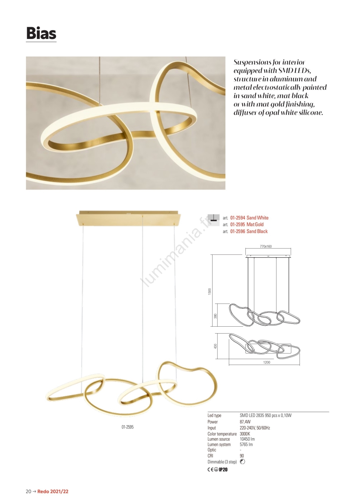 Redo 01-2594 - Suspension LED dimmable sur câble BIAS LED/87,4W/230V 3000K CRI 90 blanc