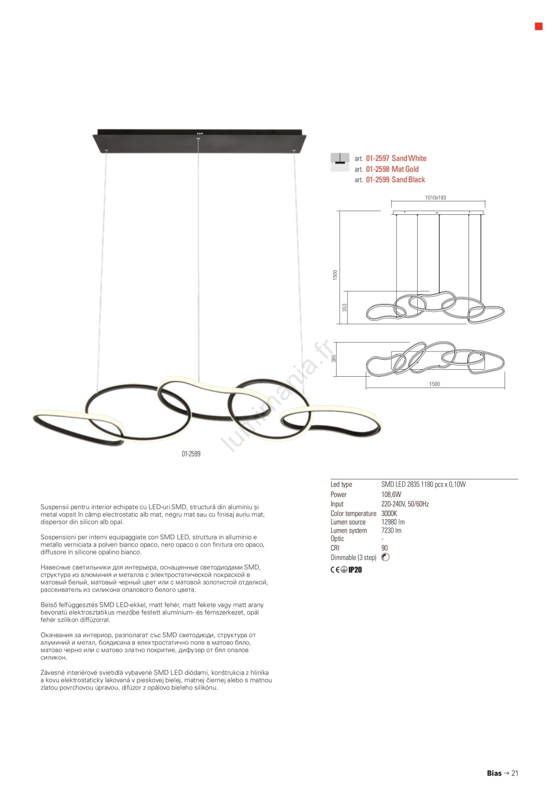 • Redo 01-2597 - Suspension LED dimmable sur câble BIAS LED/108,6W/230V 3000K IRC 90 blanche