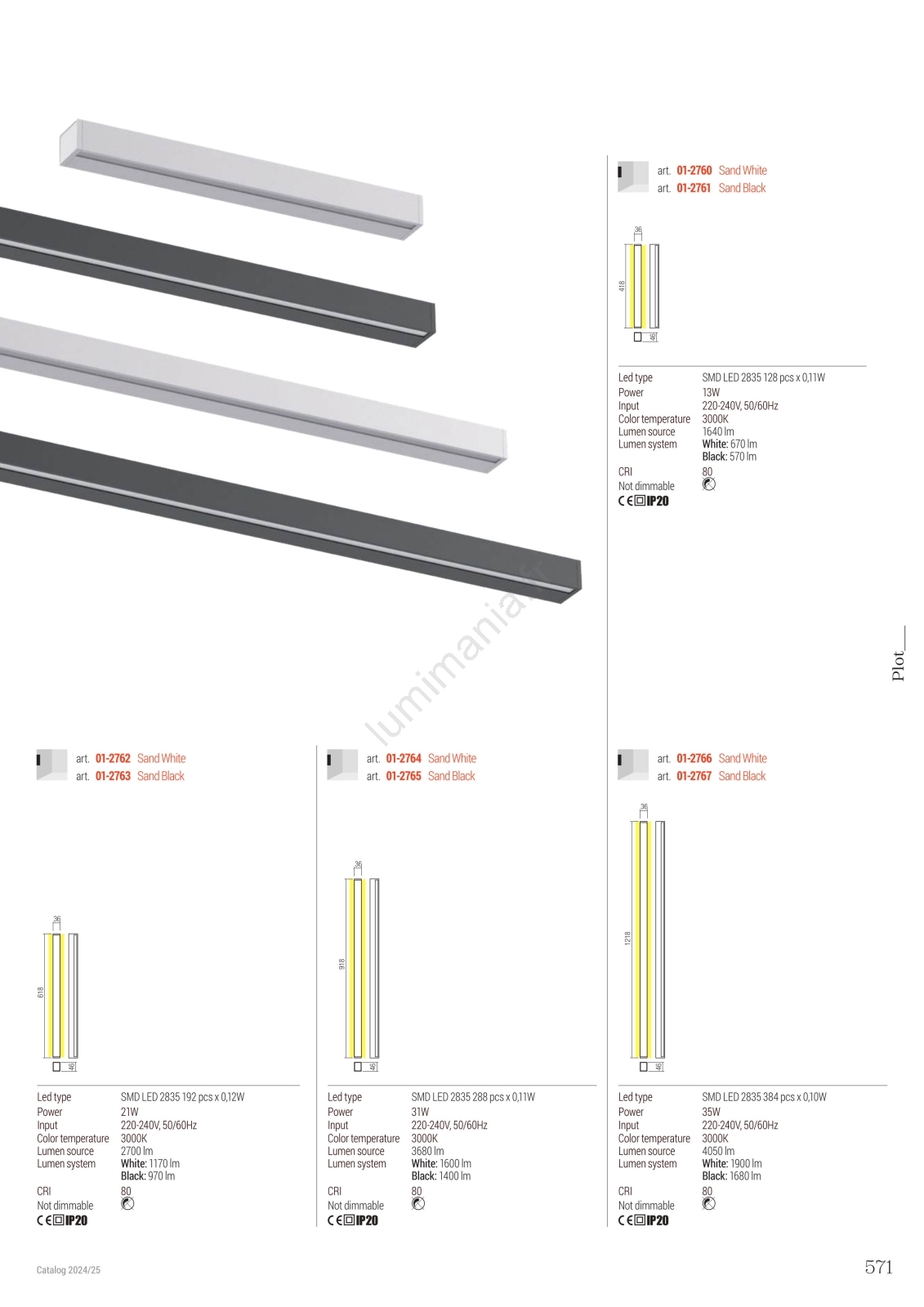• Redo 01-2766 - Applique murale PLOT LED, 35 W, 230 V, 120 cm, blanche