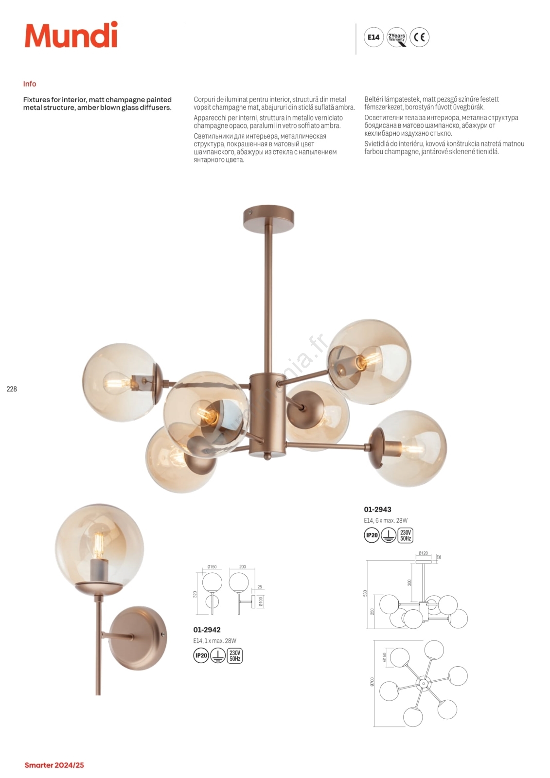 Redo 01-2942 - Applique murale MUNDI 1xE14/28W/230V cuivre/fumé caractérise un design agréable et fonctionnel.  Une ampoule à culot E14 convient pour ce luminaire. Ici, vous pouvez acheter d'autres ampoules à des prix avantageux. Vous aurez un ajout intéressant dans votre intérieur.
