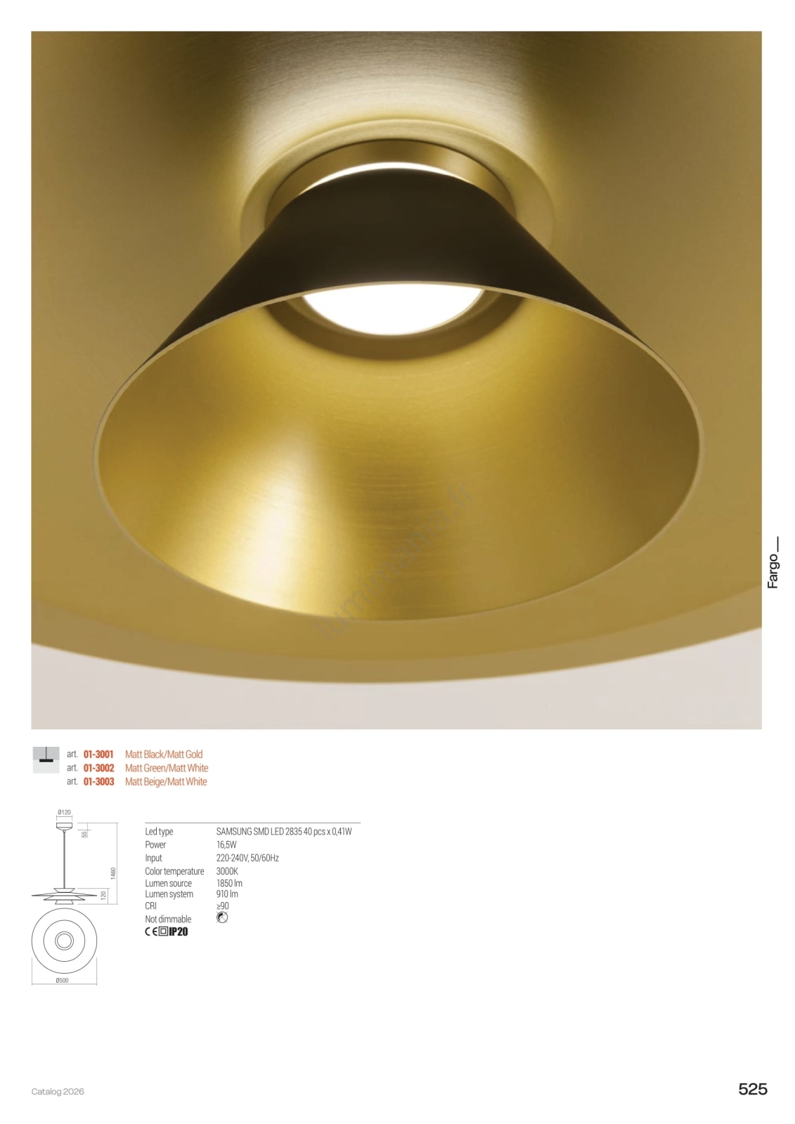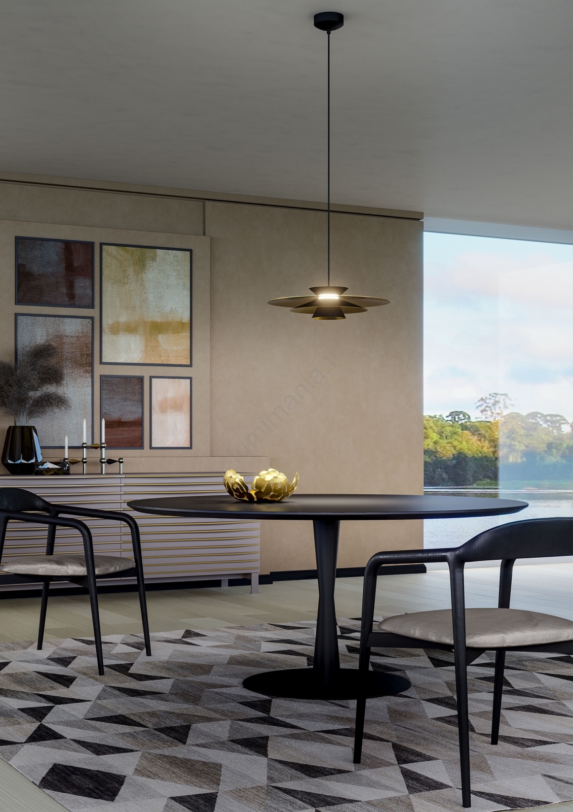 • Redo 01-3001 - Lustre LED sur câble FARGO LED/16,5W/230V CRI 90 Ø 50 cm noir/or