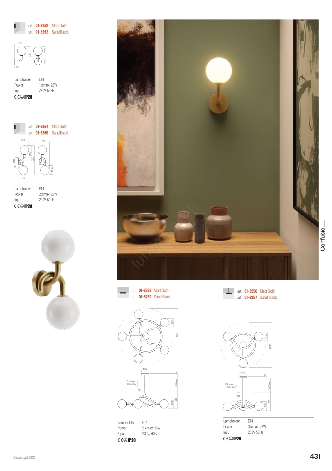 Redo 01-3256 - Lustre sur tige CONFUSIO 3xE14/28W/230V Ø 76 cm doré caractérise un design agréable et fonctionnel.  Une ampoule à culot E14 convient pour ce luminaire. Ici, vous pouvez acheter d'autres ampoules à des prix avantageux. Vous aurez un ajout intéressant dans votre intérieur.