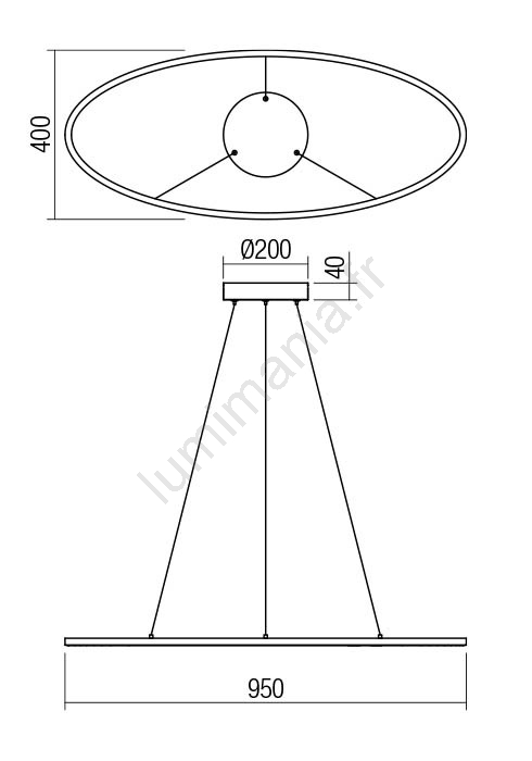 • Redo 01-3339 - Suspension LED dimmable sur câble LEO LED/48W/230V 3000/4000K IRC 90 40x95 cm noir