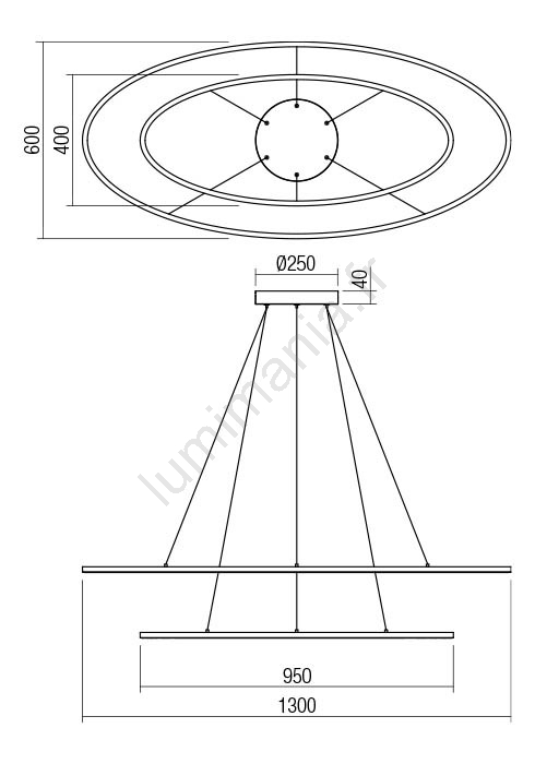 • Redo 01-3343 - Suspension LED dimmable sur câble LEO LED/115W/230V 3000/4000K IRC 90 60x130 cm noire