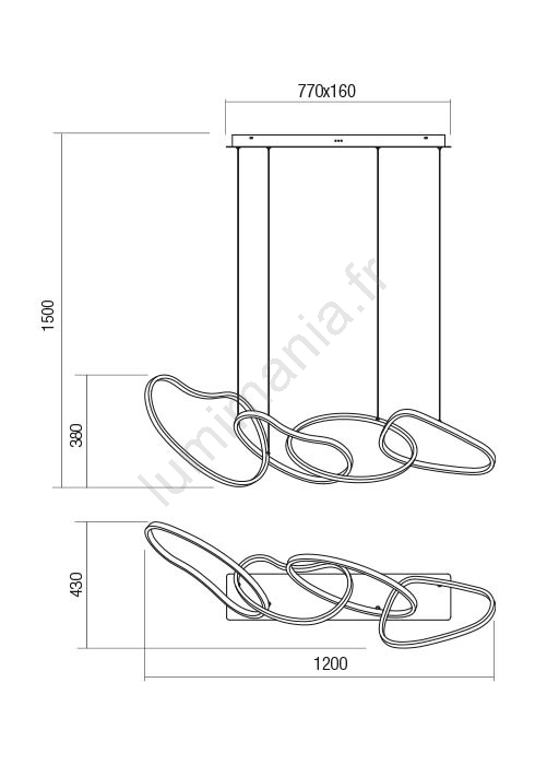 • Redo 01-3389 - Lustre LED dimmable sur câble BIAS LED/90W/230V 3000/4500/6500K IRC 90 doré