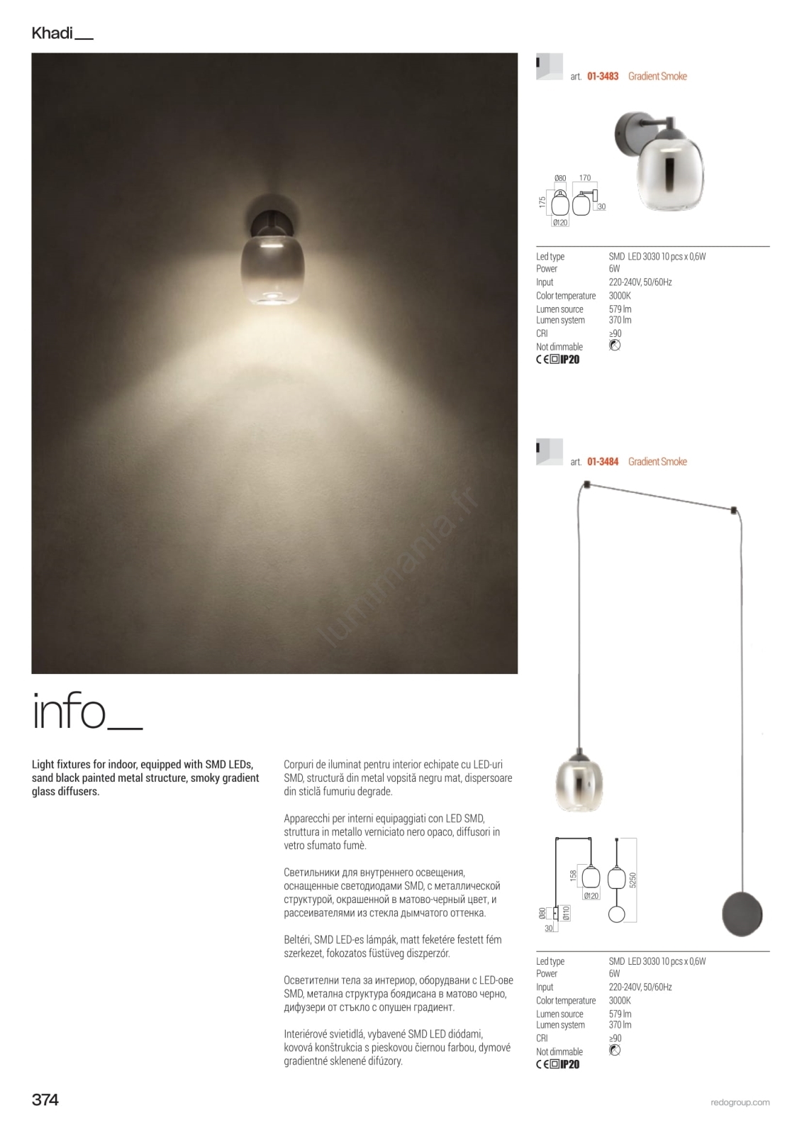 Redo 01-3484 - Applique murale LED KHADI, 6 W, 230 V, IRC 90, Ø 12 cm, noir/fumé