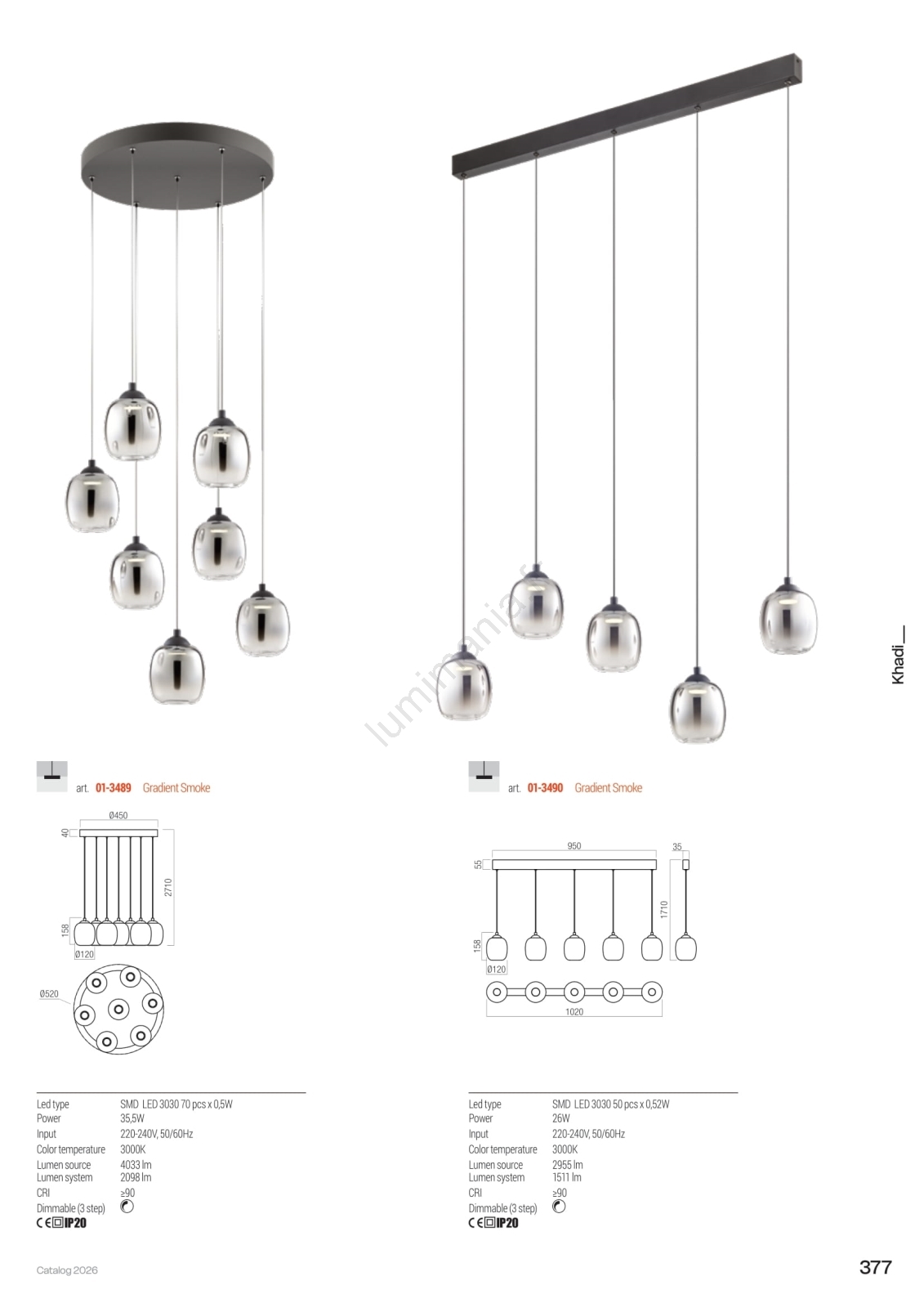 Redo 01-3489 - Suspension LED dimmable sur câble KHADI 7xLED/5W/230V CRI 90 Ø 52 cm noir/fumé