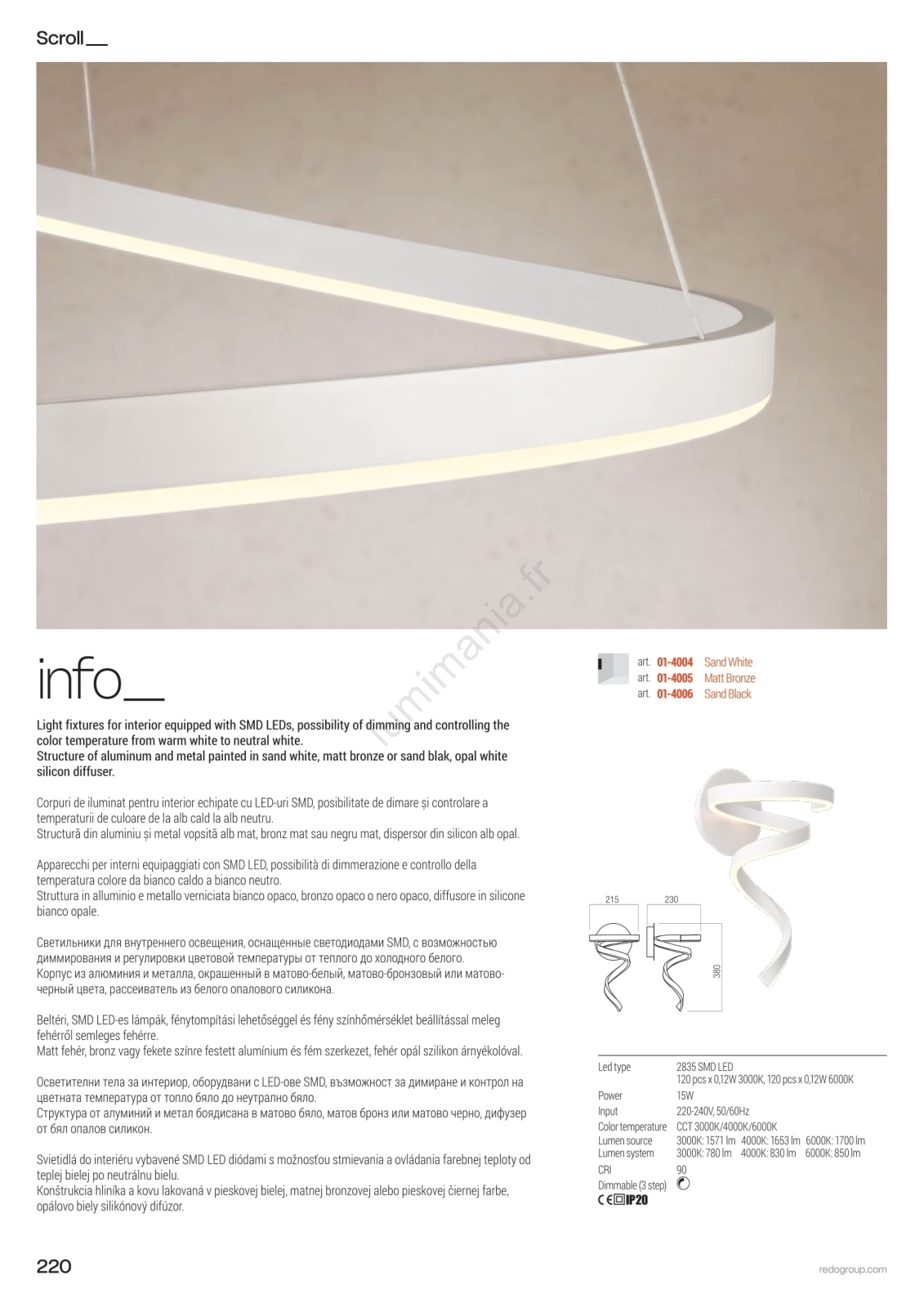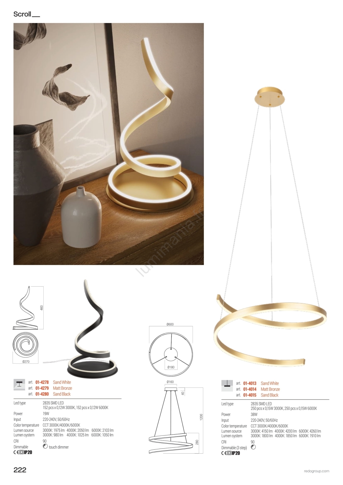 • Redo 01-4013 - Suspension dimmable sur câble SCROLL LED/38W/230V 3000K/4000K/6000K IRC 90 Ø 60 cm blanc