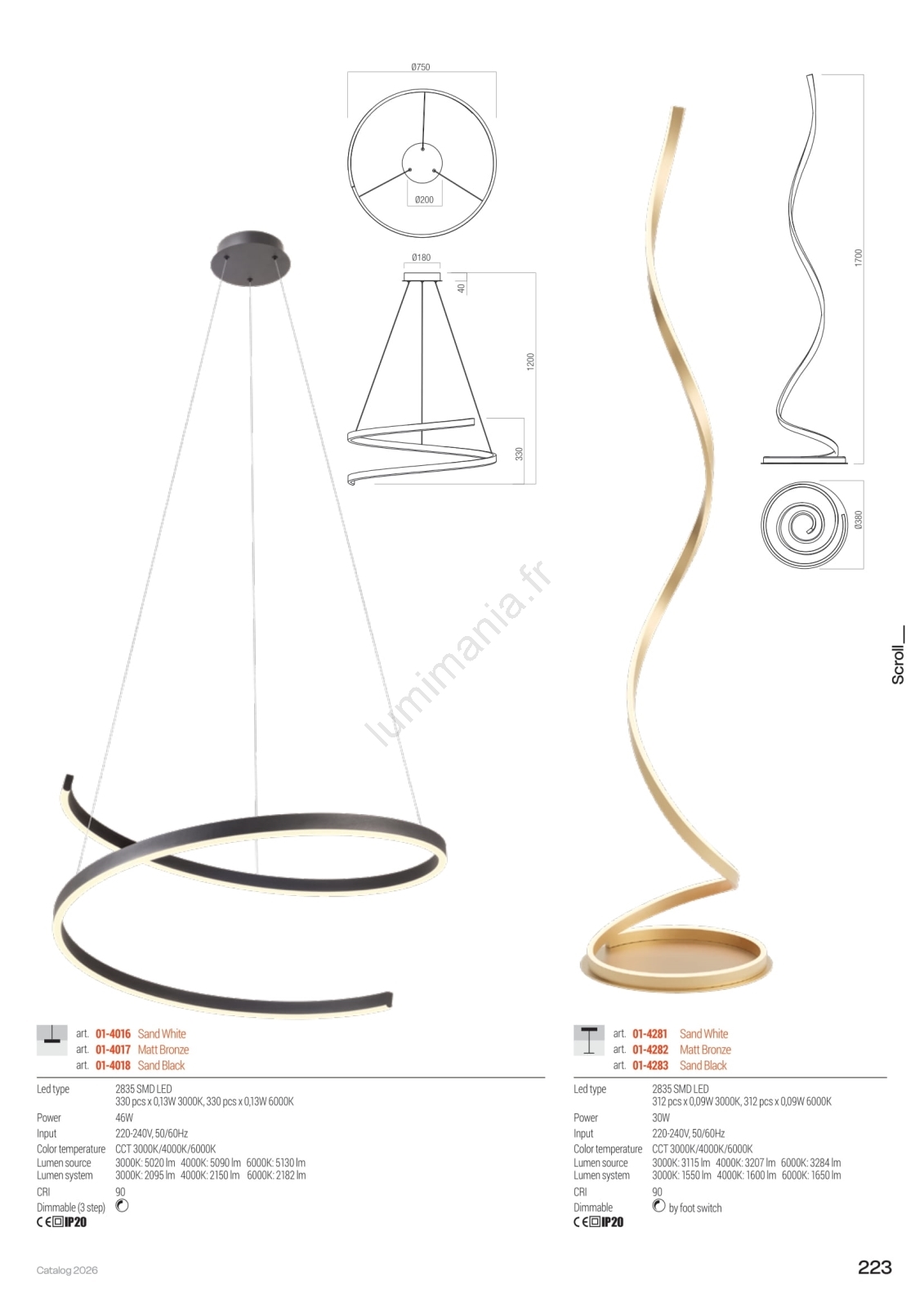 • Lampadaire LED dimmable SCROLL LED/30W/230V 3000K/4000K/6000K IRC 90 doré