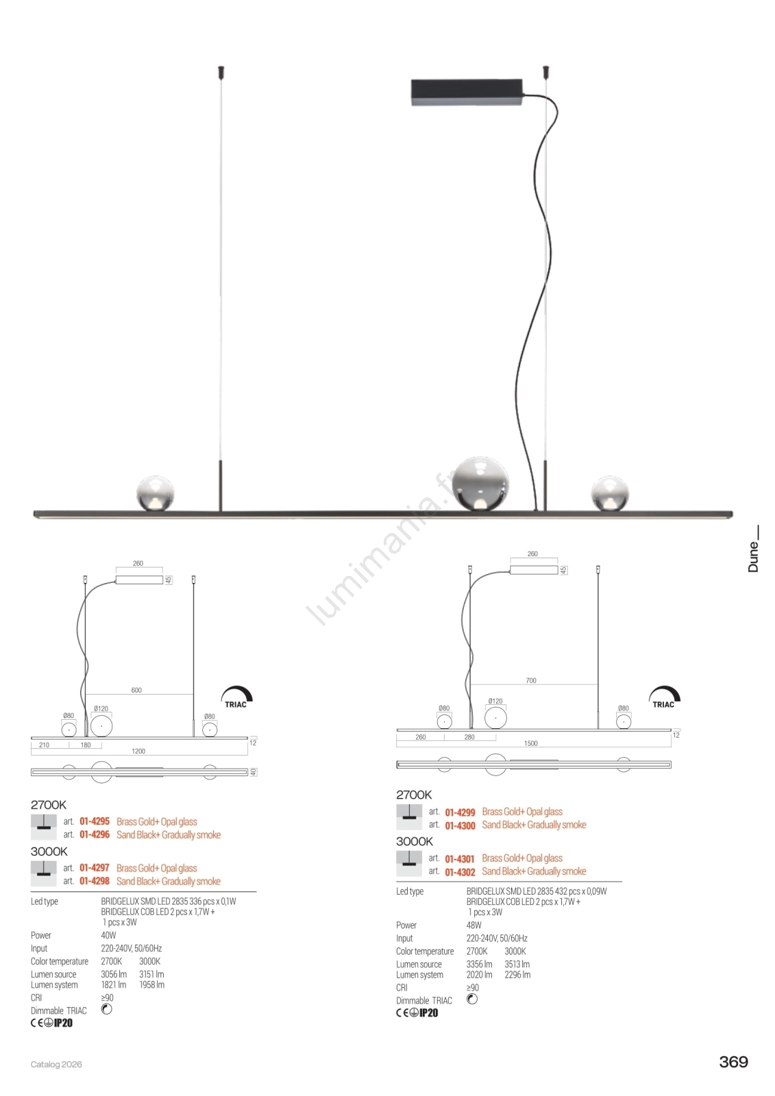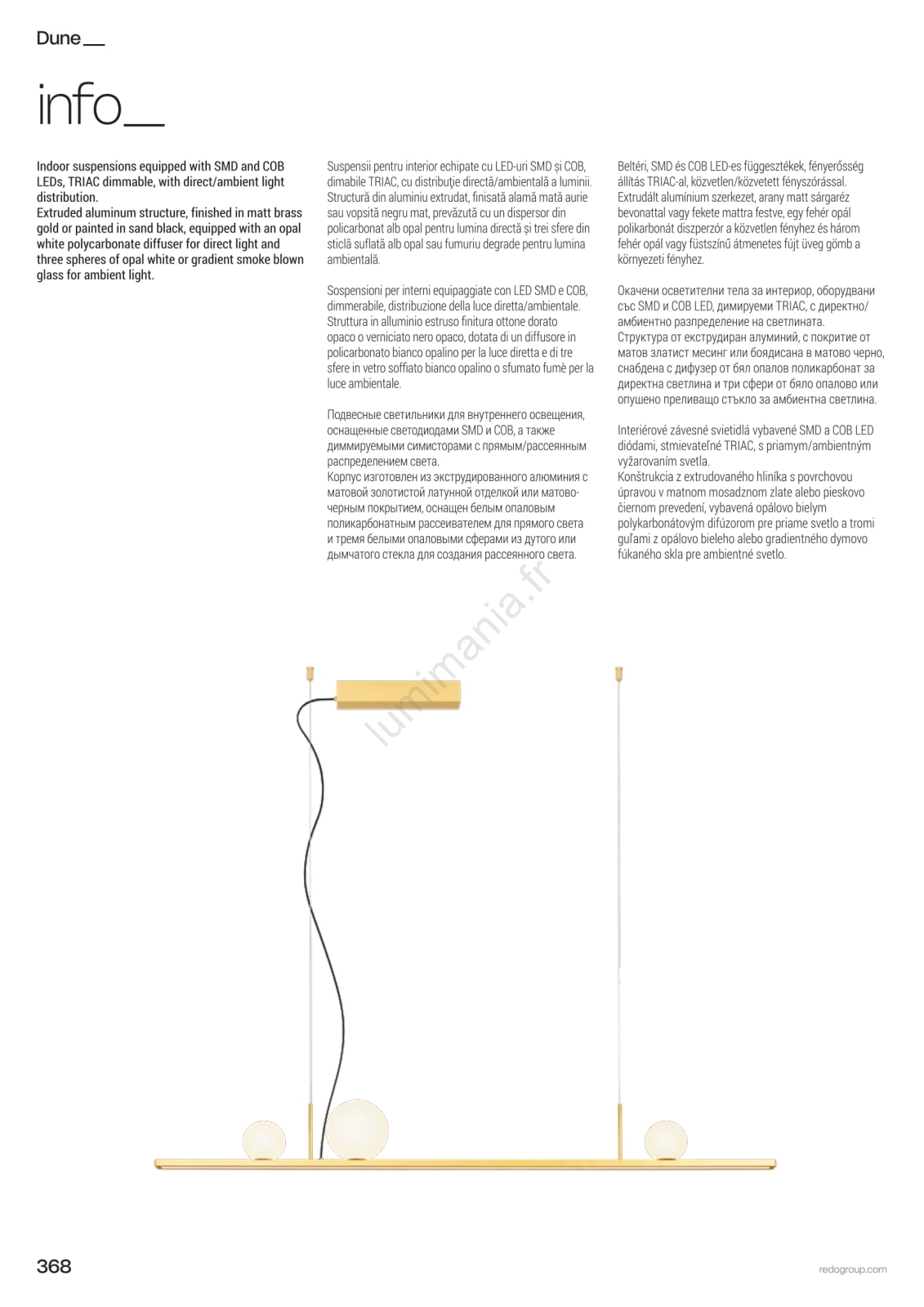 • Redo 01-4301 - Suspension LED dimmable sur câble DUNE LED/48W/230V 3000K IRC 90 blanc/or