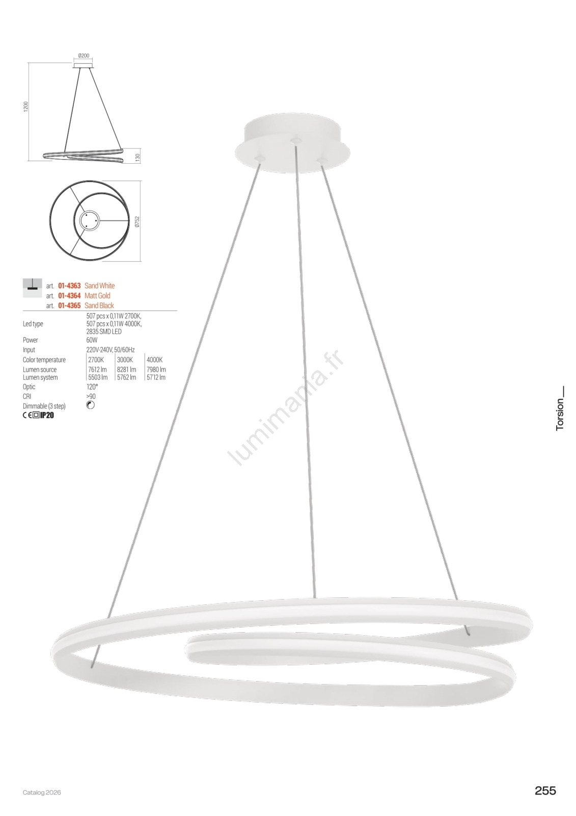 • Redo 01-4364 - Suspension LED dimmable sur câble TORSION LED/60W/230V 2700/3000/4000K IRC 90 Ø 75,2 cm doré