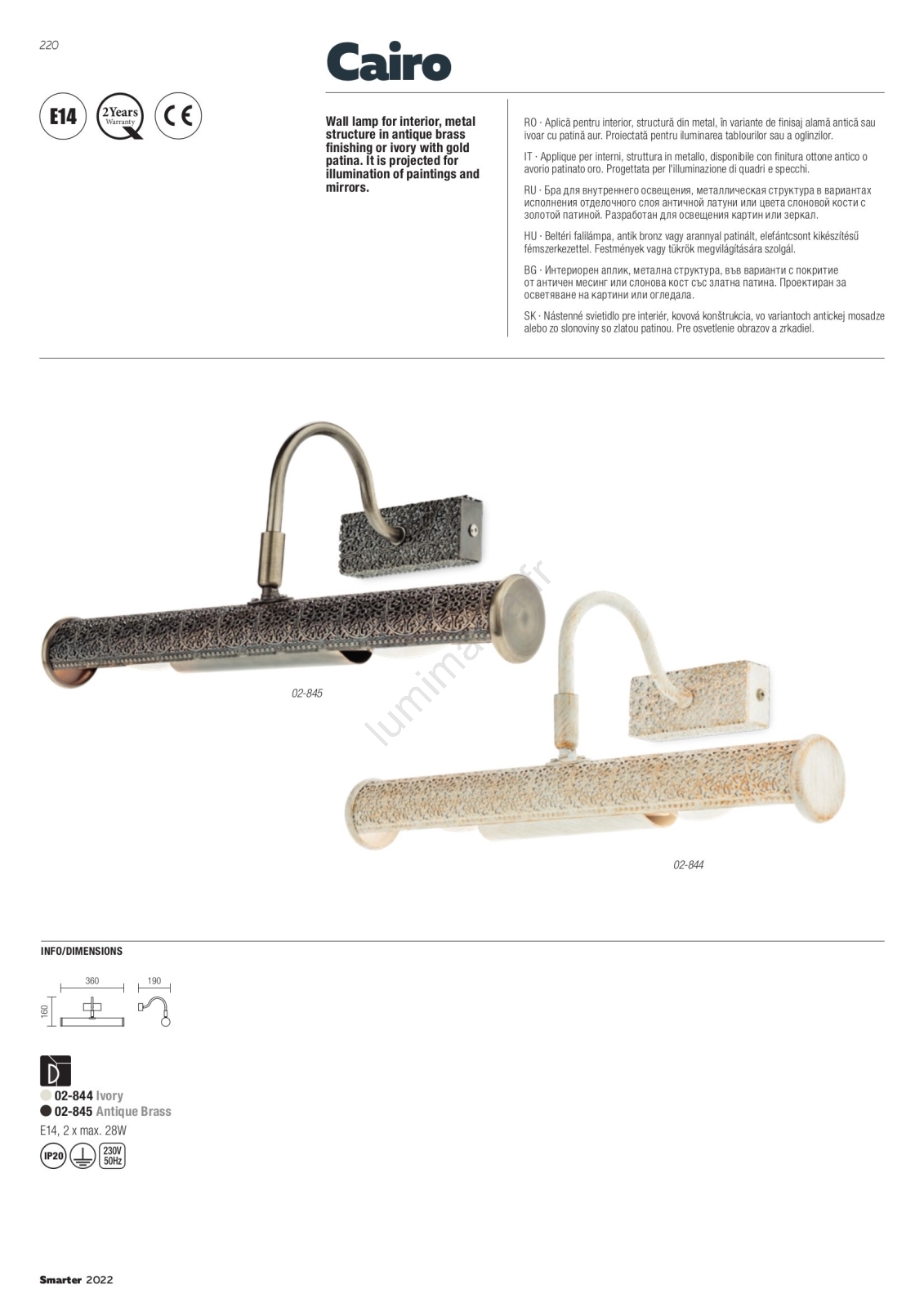 Redo 02-845 - Applique pour tableaux CAIRO 2xE14/28W/230V, 36 cm, laiton caractérise un design agréable et fonctionnel.  Une ampoule à culot E14 convient pour ce luminaire. Ici, vous pouvez acheter d'autres ampoules à des prix avantageux. Vous aurez un ajout intéressant dans votre intérieur.