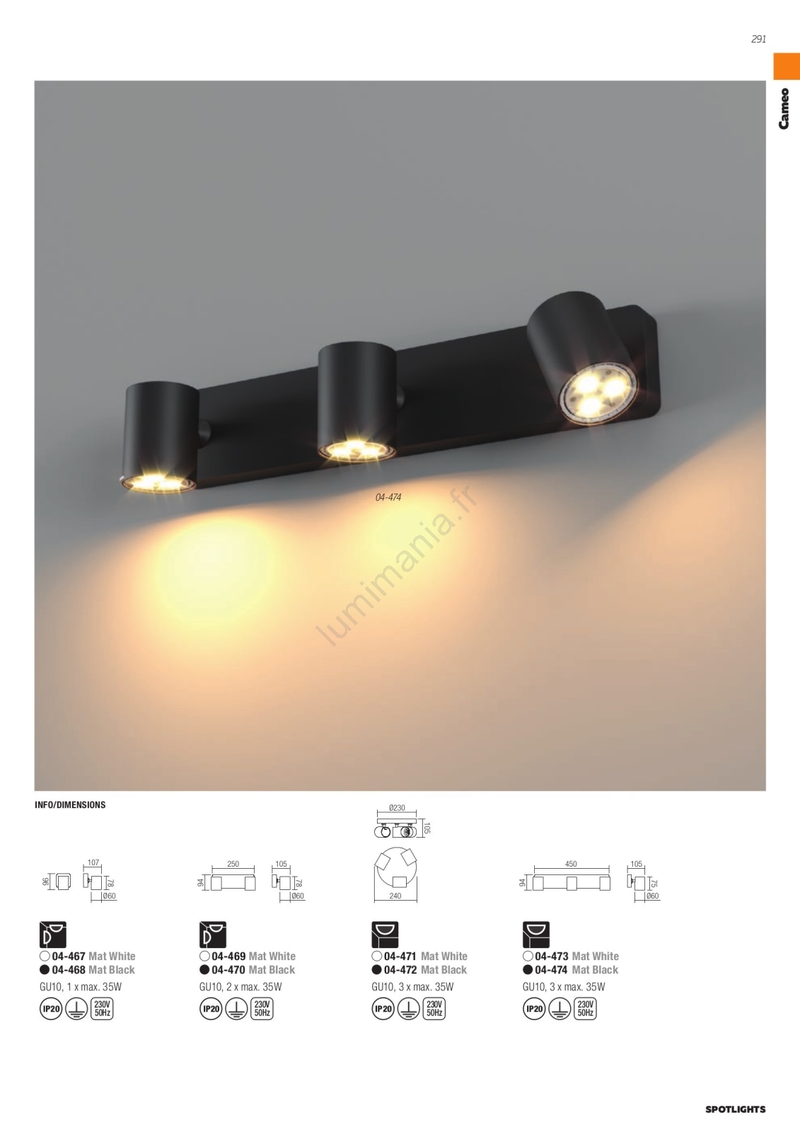 Redo 04-473 - Spot CAMEO 3xGU10/35W/230V blanc caractérise un design agréable et fonctionnel.  Une ampoule à culot GU10 convient pour ce luminaire. Ici, vous pouvez acheter d'autres ampoules à des prix avantageux. Vous aurez un ajout intéressant dans votre intérieur.