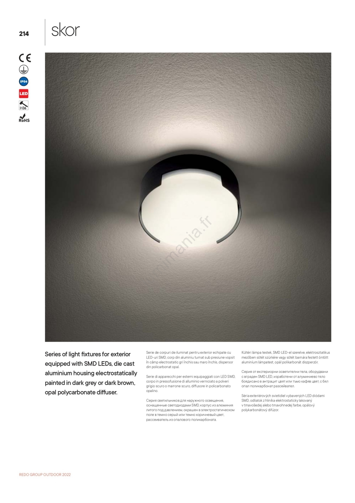 • Redo 90006 - Plafonnier extérieur SKOR LED/16W/230V d. 25 cm IP54 marron