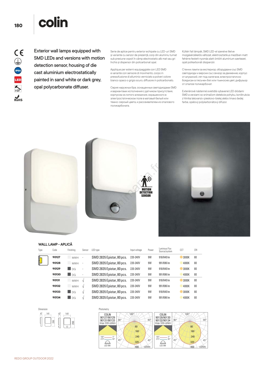 • Redo 90131 - Applique murale extérieure LED COLIN avec détecteur de mouvement et capteur crépusculaire LED/9W/230V 3000K IP54 blanche