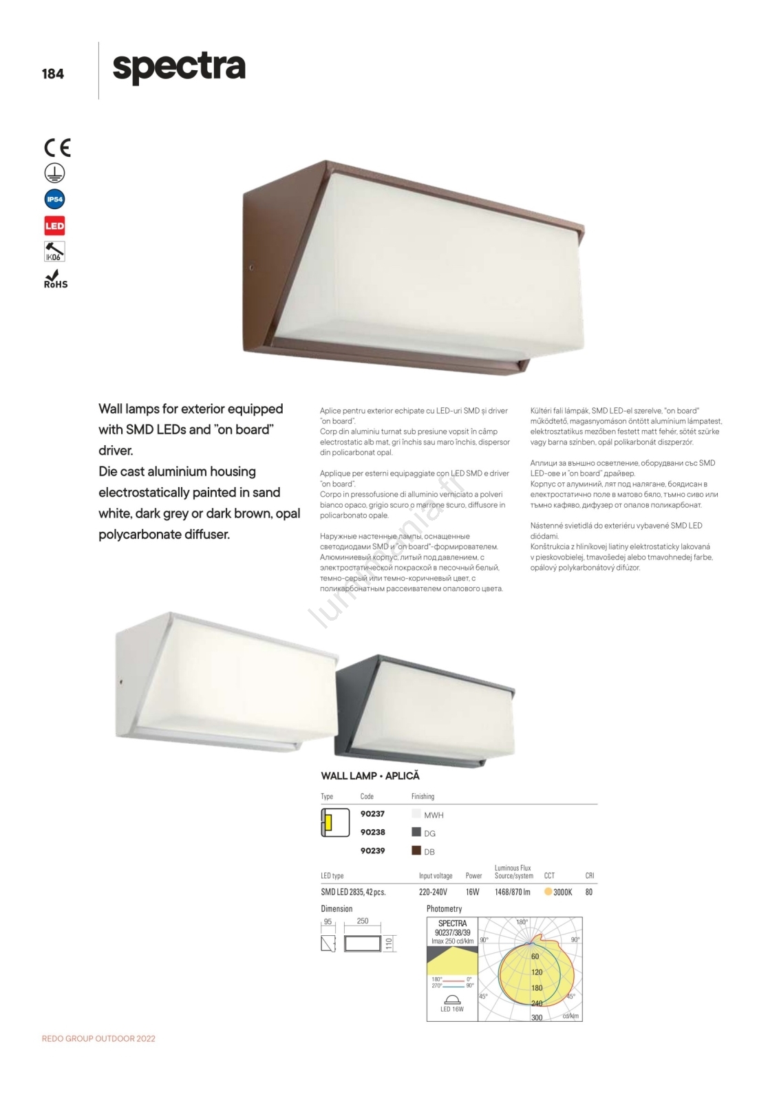 • Redo 90237 - Applique murale extérieure SPECTRA LED/16W/230V 3000K IP54 blanc