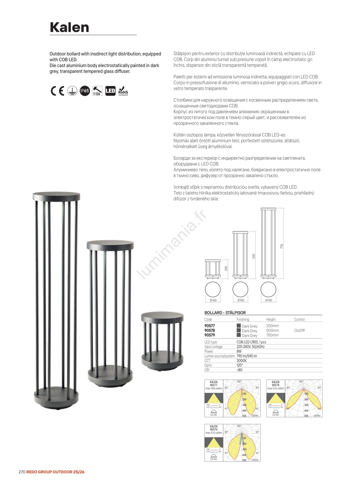 Redo 90577 - Lampe extérieure LED KALEN LED/8W/230V 3000K 20 cm IP65 anthracite