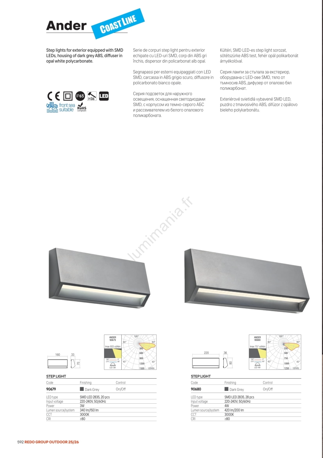 Redo 90679 - Luminaire d'orientation extérieur ANDER LED/3W/230V 3000K IP65 anthracite