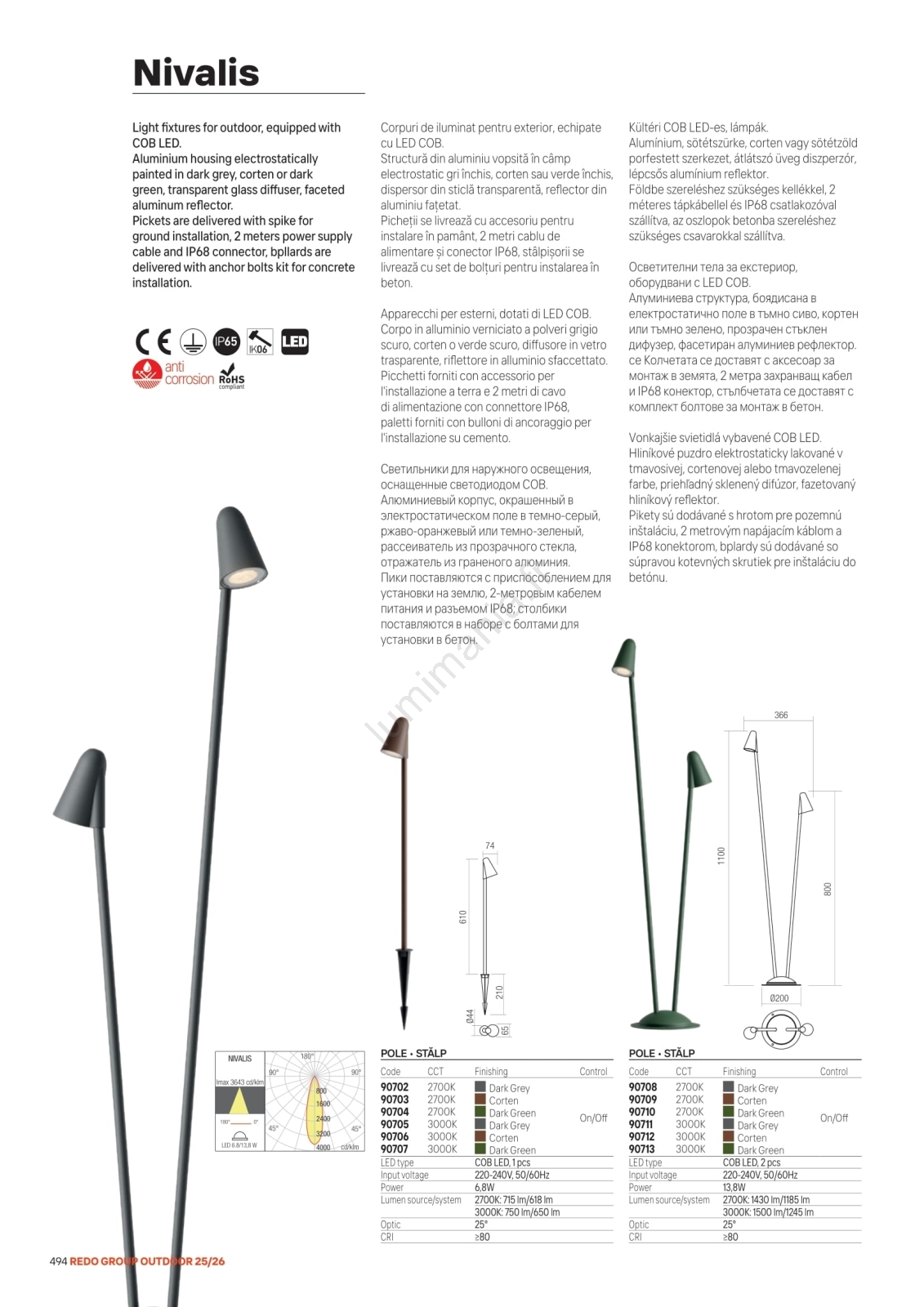 Redo 90712 - Lampe d'extérieur à LED NIVALIS 2xLED/6,9W/230V 3000K 110 cm IP65 brun