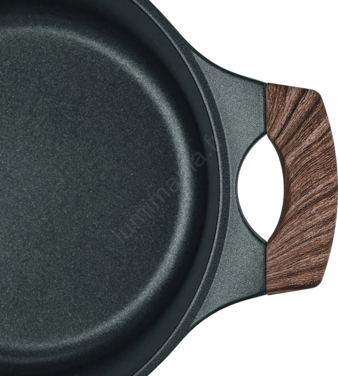 • Les parois épaisses en aluminium moulé assurent une stabilité thermique, une résistance maximale à la déformation et une longue durée de vie de l'ustensile.