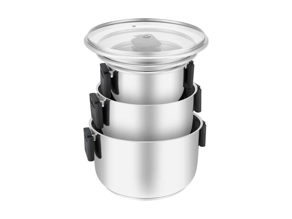 • Le set de 3 casseroles Anser avec couvercle allie design élégant et haute performance pour la cuisine quotidienne.