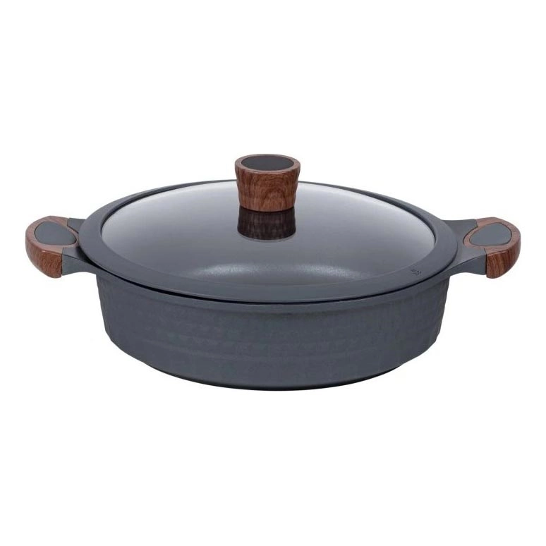 • Un diamètre de 28 cm et une capacité de 5 litres offrent une contenance idéale pour préparer des repas pour toute la famille, tandis que l'aluminium moulé sous pression assure un transfert rapide de la chaleur et des performances stables sur tous les types de plaques de cuisson.