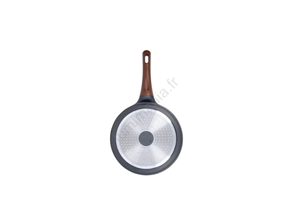 • La poignée ergonomique au revêtement Soft-Touch et à l'aspect bois offre une prise en main confortable et sûre, tout en donnant à la poêle un joli design.