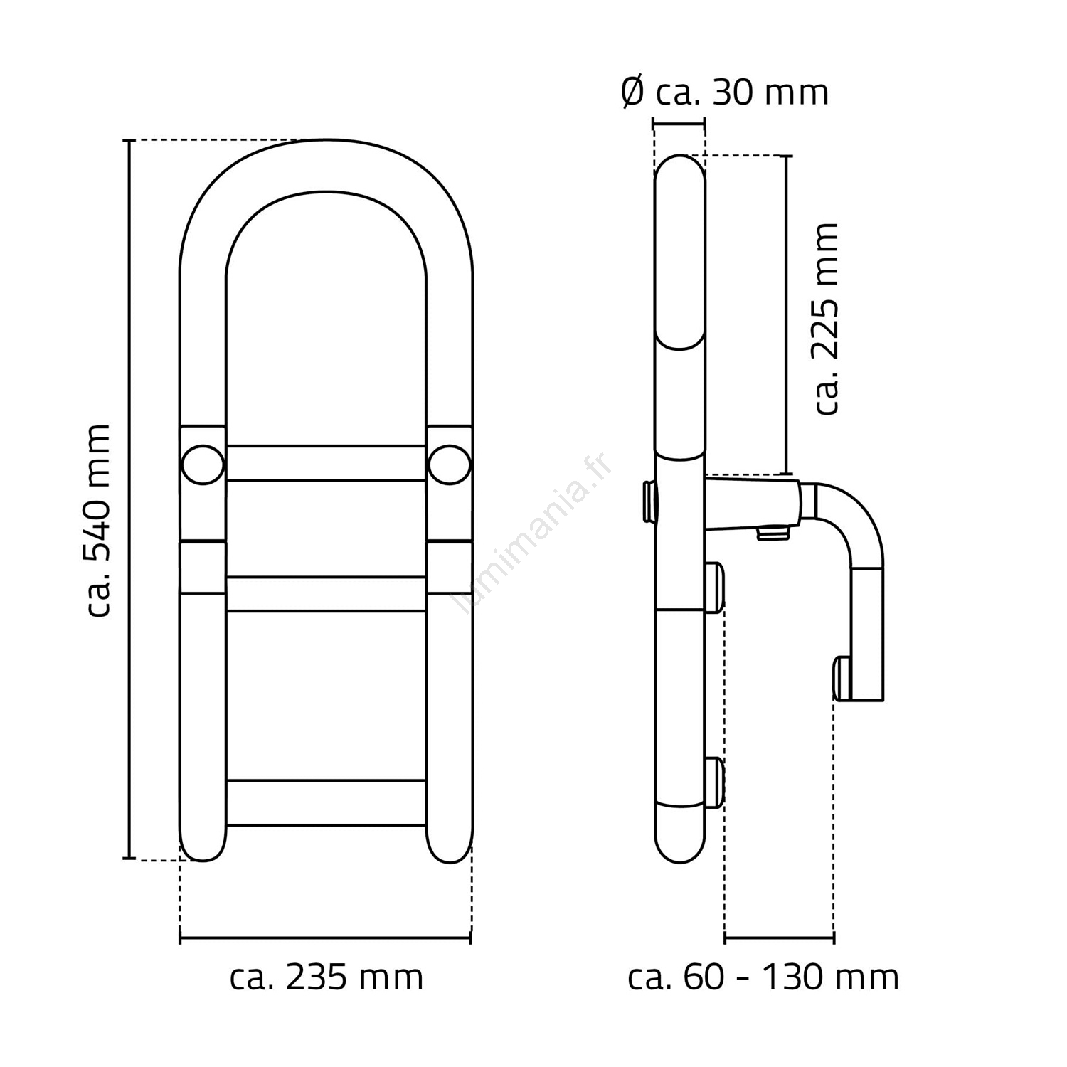 • Son entraxe est réglable de 60 à 130 mm.