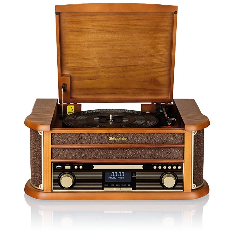 • Il s'agit d'une radio rétro en bois DAB/DAB+ / FM avec tourne-disque, lecteur CD-MP3, lecteur cassette, Bluetooth, port USB et entrée AUX.