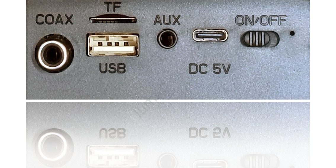 • Entrées audio: prise Jack 3,5 mm (AUX) et entrée coaxiale RCA pour la connexion à une TV ou un PC.