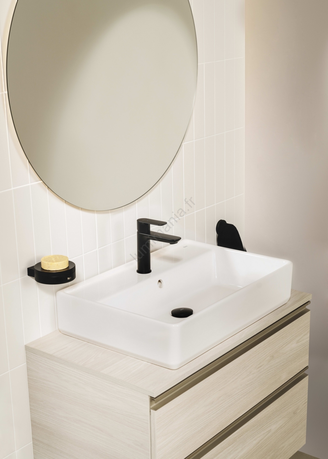 • Le lavabo est conçu pour une installation à poser sur plan, permettant un positionnement flexible et une combinaison avec différents types de plans de salle de bains.