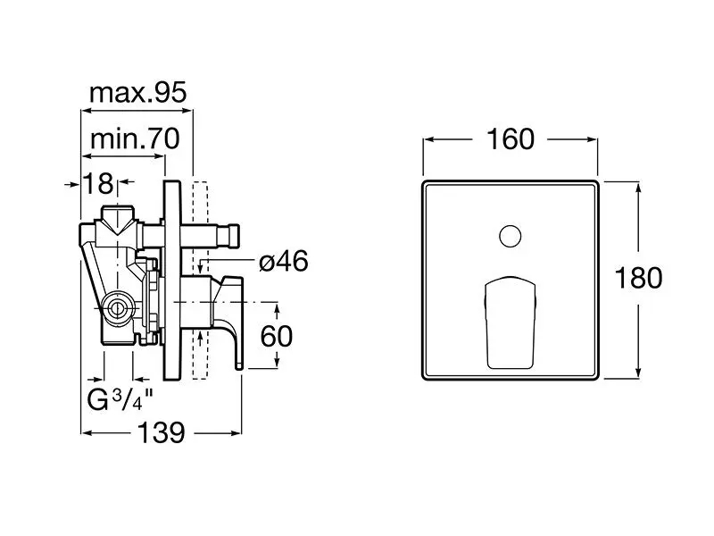 Roca A5A0B01C00 - Mitigeur de douche encastré L90, chromé brillant