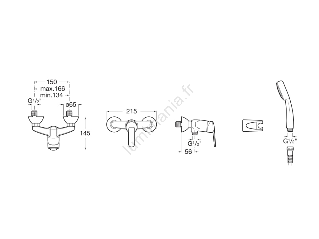 • Le colis contient : le mitigeur de douche, une douchette, un flexible de 1,5 m, un support mural.