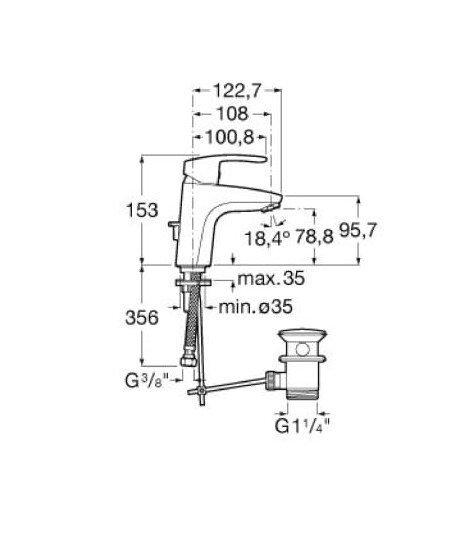 Roca A5A3098C00 - Mitigeur pour lavabo + garniture de vidage MONODIN 15,3 cm chrome brillant