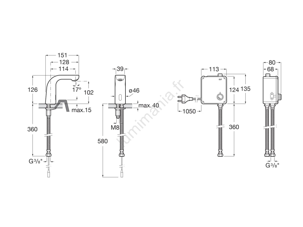 • Mitigeur de lavabo sans contact avec mitigeur intégré (mitigeur inclus).