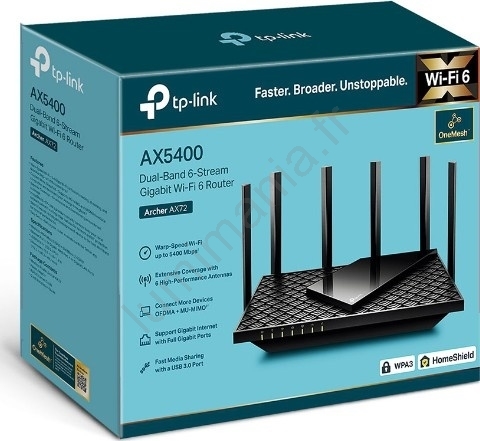 • Le routeur crée un réseau sans fil puissant et stable en utilisant la norme Wi‑Fi 6 la plus récente, ce qui lui permet de gérer plusieurs connexions simultanées et de réduire la latence.