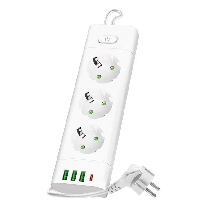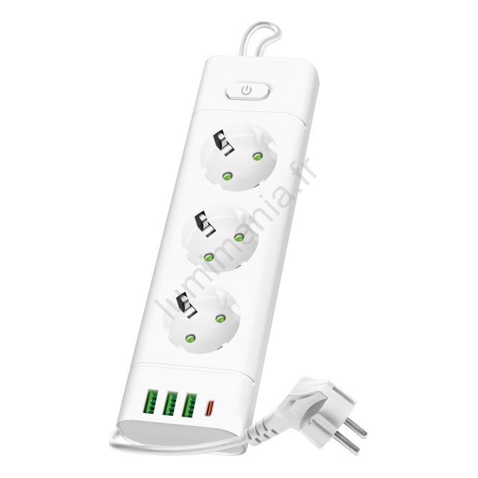 • Nombre de prises: 3 x 230V, 3x USB-A et 1 x USB-C.