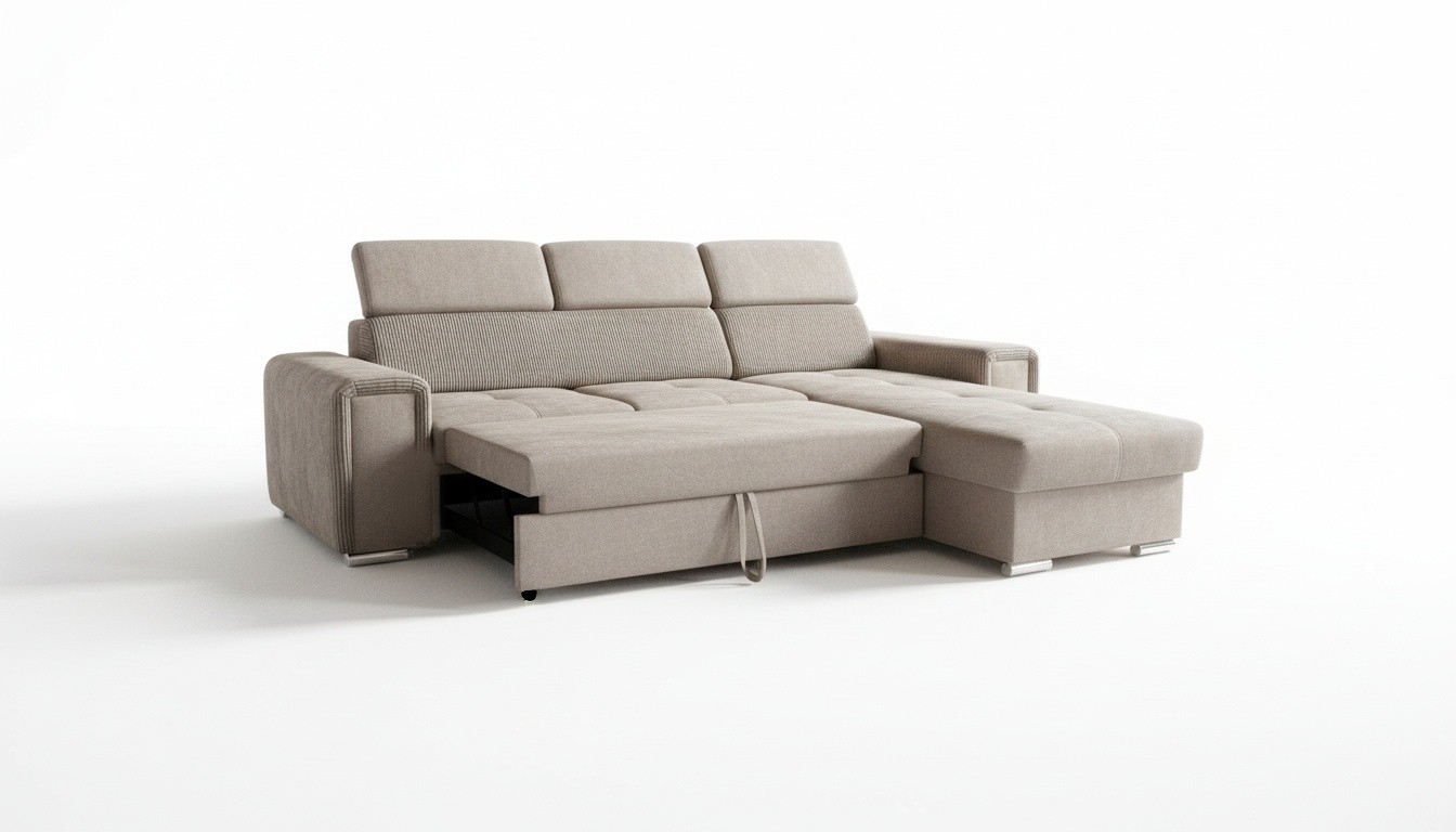 Canapé d'angle réversible convertible en L avec coffre de rangement SALVADA beige