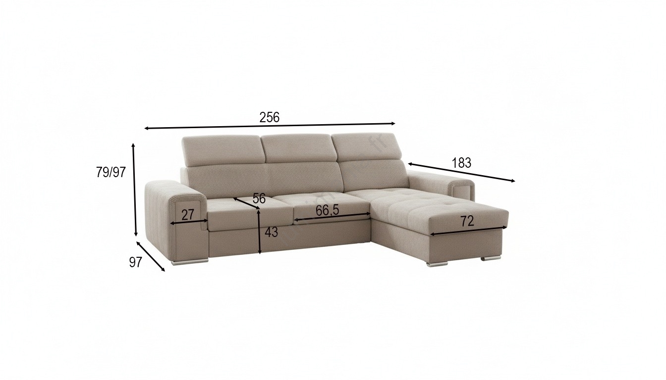 • Le canapé offre 3 appuie-têtes réglables sur 5 positions.