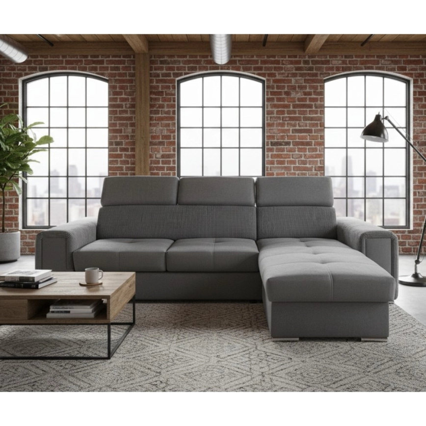 Canapé d'angle réversible convertible en L avec coffre de rangement SALVADA gris foncé