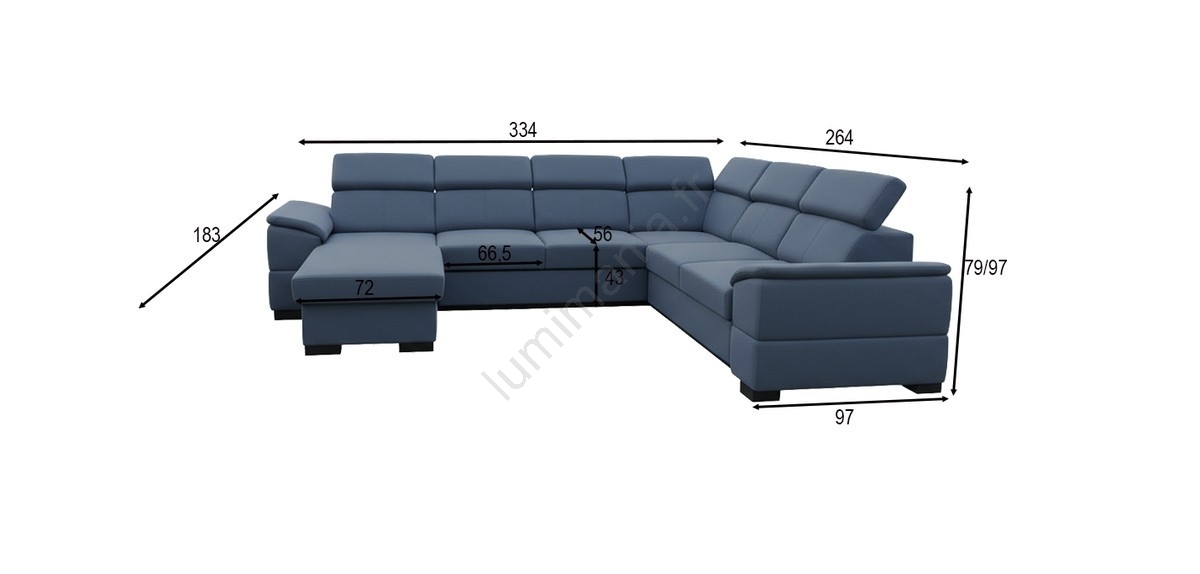 • Le canapé propose 7 appuie-têtes réglables sur 5 positions.