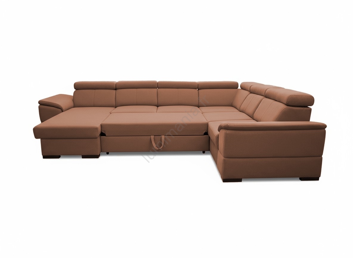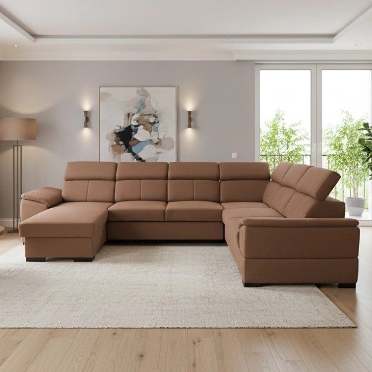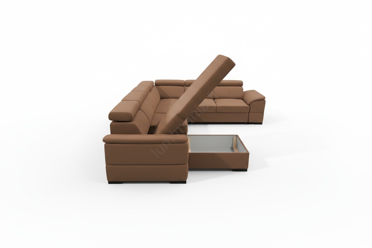 Canapé d'angle convertible en U à angle réversible avec coffre de rangement GRANADA, marron