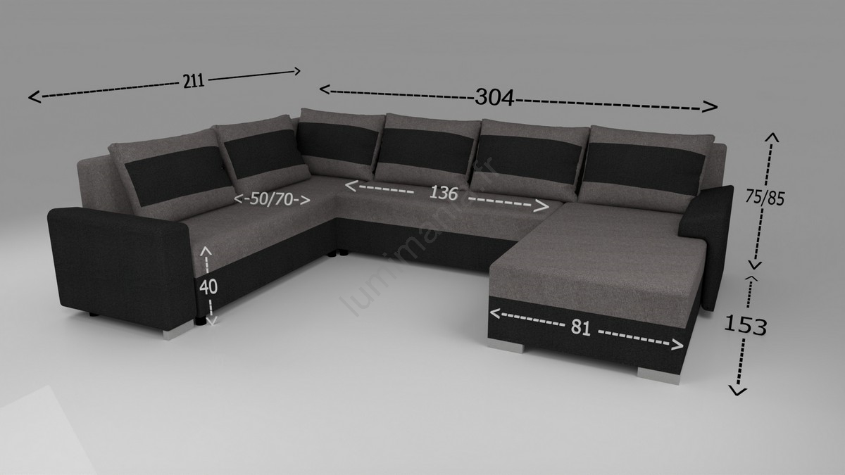 • Canapé rembourré convertible réversible en U OXFORD noir/gris