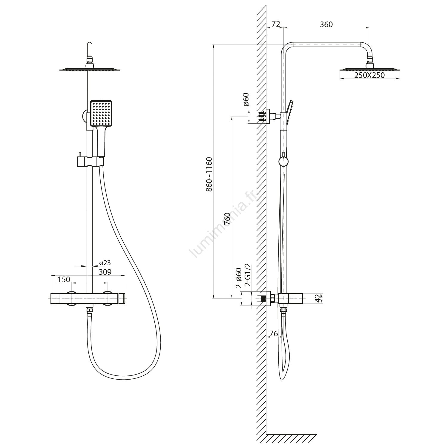 Sapho - Ensemble de douche avec mitigeur CUBEMIX noir mat
