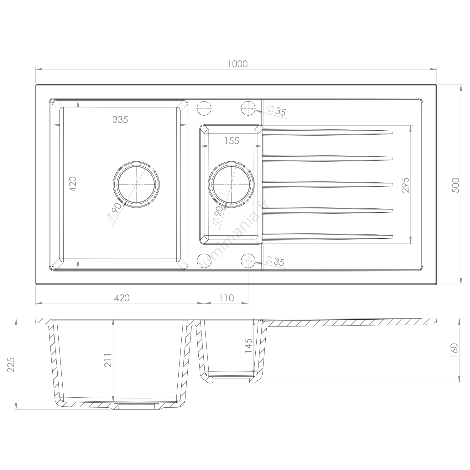 • Sapho - Évier de cuisine 100x50 cm granit/blanc