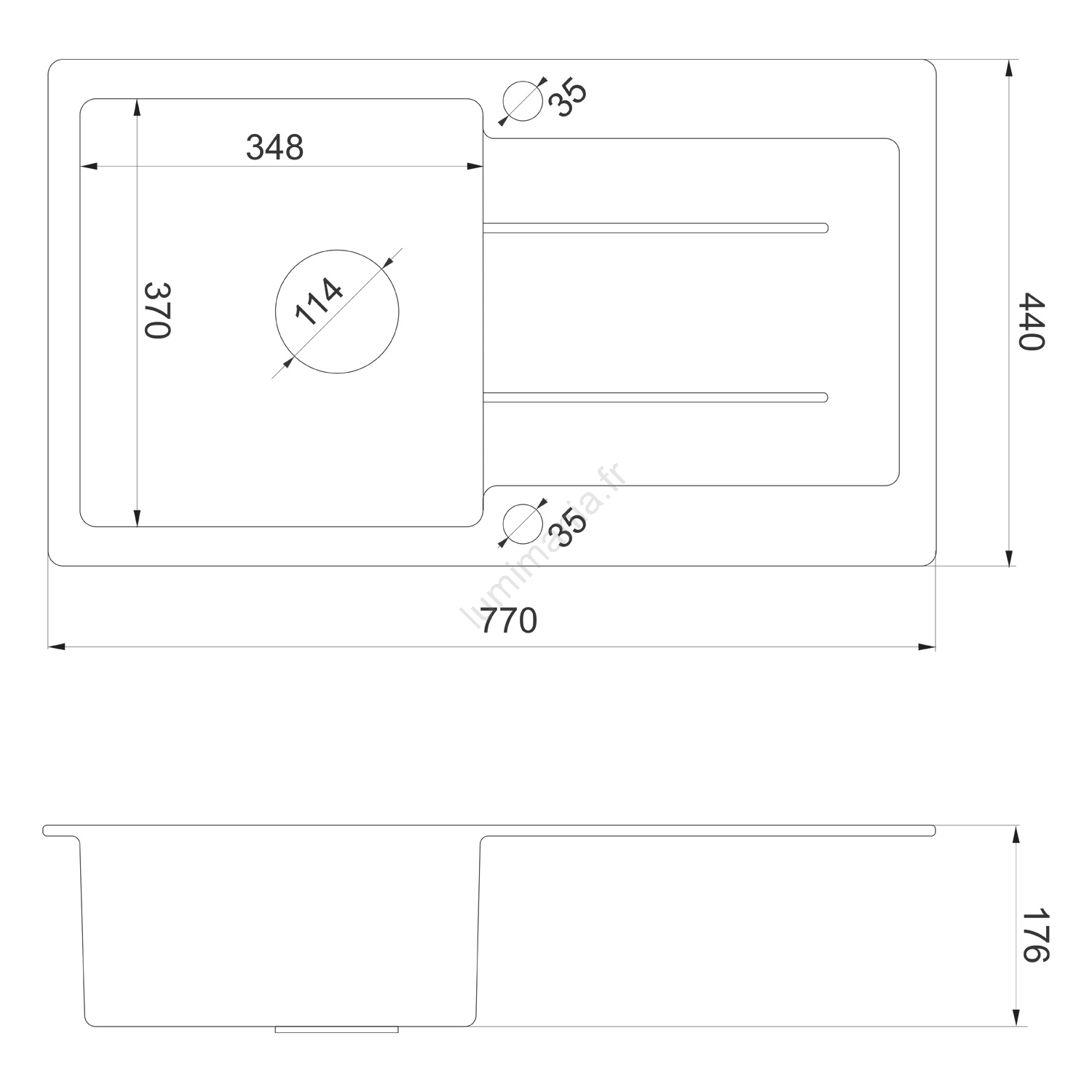 • L'évier est fabriqué en granit et est équipé d'un égouttoir.