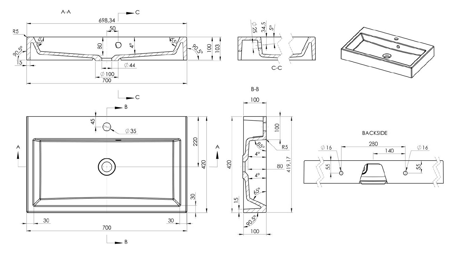 • Le lavabo est fabriqué en marbre coulé, offrant une finition durable et élégante.