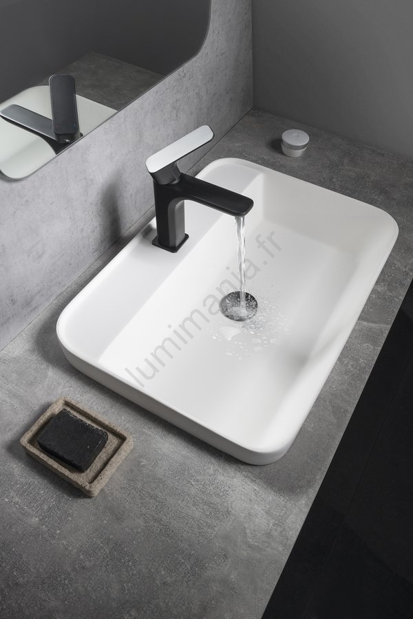 • Le lavabo encastré est fabriqué en Solid Surface, offrant une surface homogène, résistante et facile d'entretien.