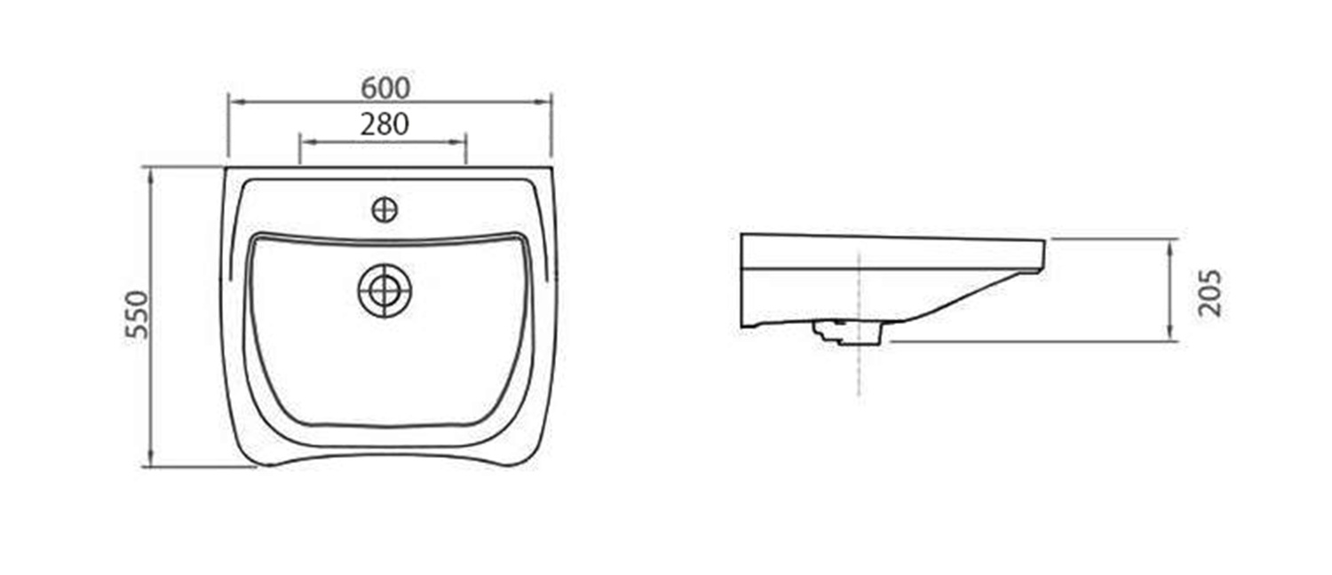 • Il a des dimensions 600x550 mm et est de couleur blanche.